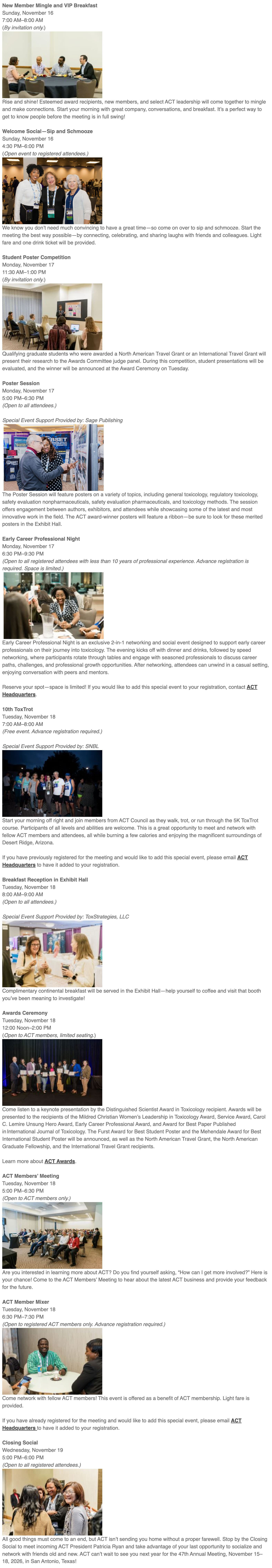 Special networking events are thoughtfully integrated throughout the meeting, providing several chances for one-on-one conversations, valuable interactions, and opportunities to meet new people. Some events are open to all registered attendees, while others are by invitation only. Be sure to take advantage of these moments to connect, share ideas, and build meaningful relationships.
